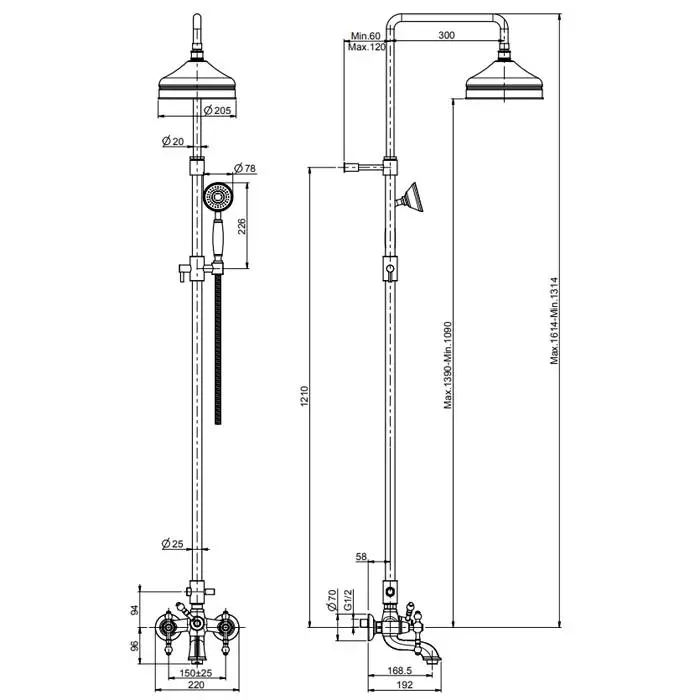 Carlo Frattini Epoque Смеситель для ванны со стойкой, в комплекте: шланг, ручной душ, верхний душ, цвет: бронза