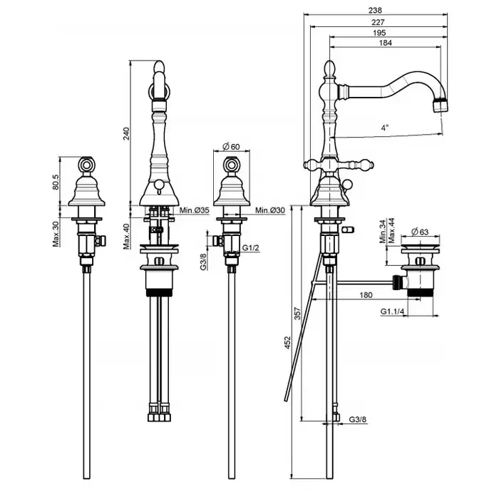Carlo Frattini Epoque, Смеситель на раковину на 3 отверстия с вращающимся изливом, цвет: Хром