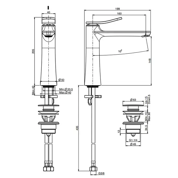 Carlo Frattini Flo' Смеситель для раковины, на 1 отв., высота 20.5см, излива 16см., с донный клапан, цвет: хром