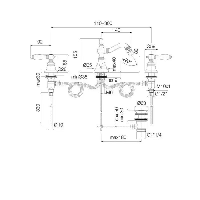 Carlo Frattini Herend, Cмеситель для биде на 3 отверстия с вращающимся изливом, цвет: Хром