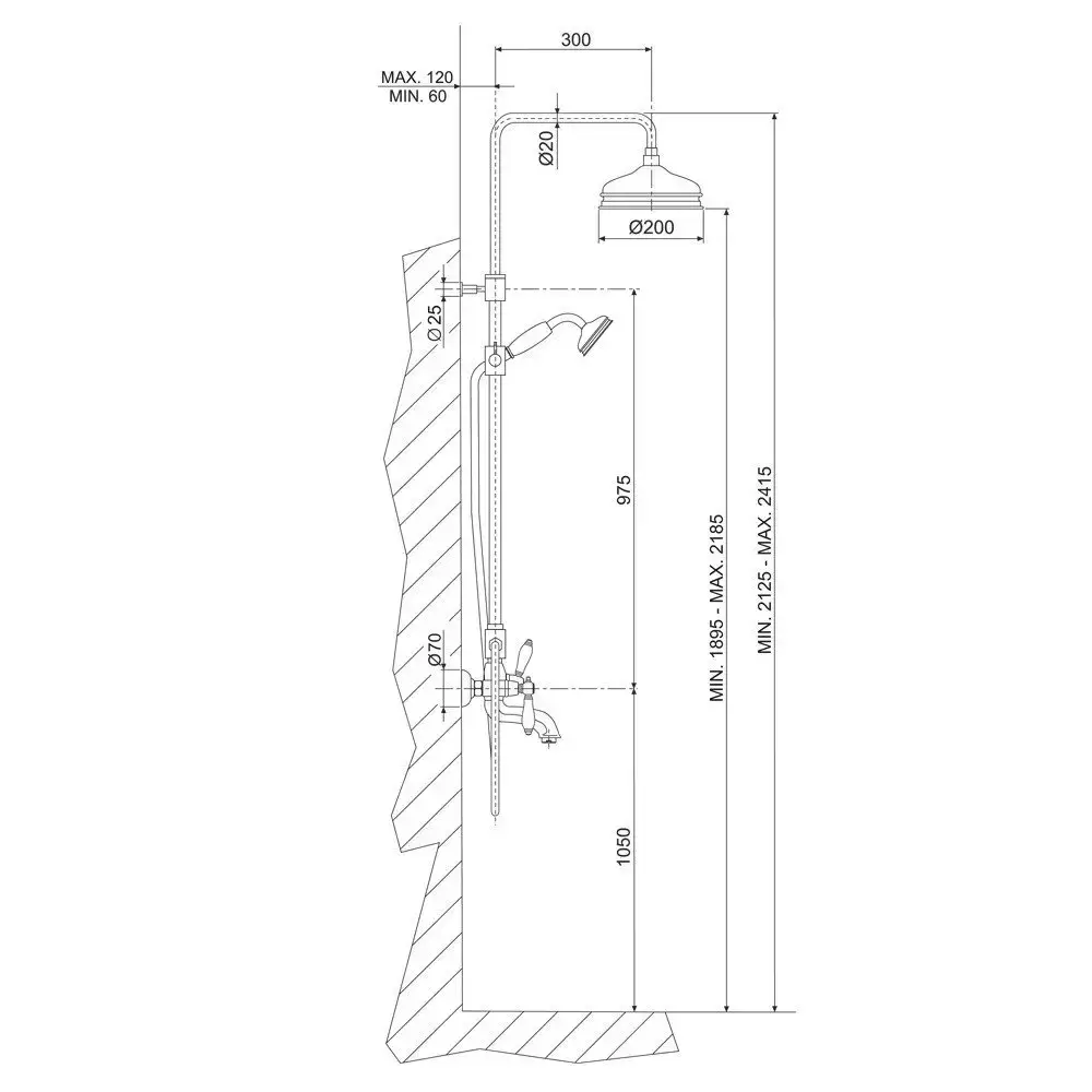 Carlo Frattini Herend, Смеситель с душевой стойкой, верхним душем и душевым комплектом, цвет: Хром