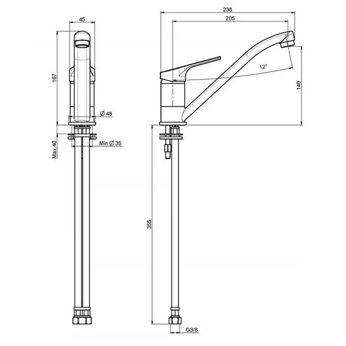 Carlo Frattini Kitchen Смеситель для кухни с двумя гибкими шлангами 370мм, цвет: хром