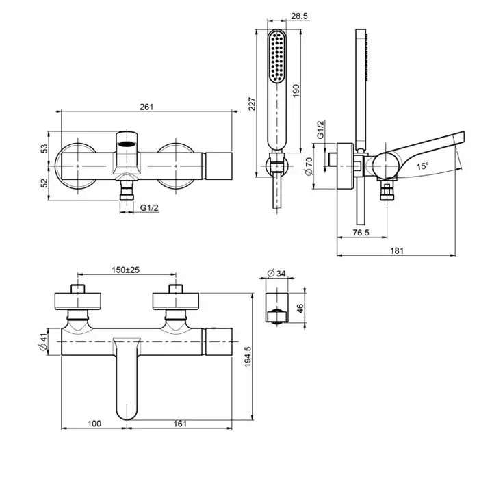 Carlo Frattini Nomos go, Смеситель внешнего монтажа на ванну с душевым комплектом, цвет: Хром