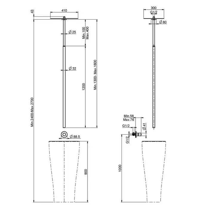 Carlo Frattini Nomos go Встроенный смеситель с потолочный излив, цвет: хром