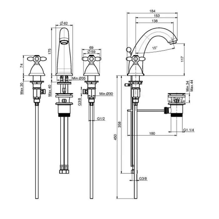 Carlo Frattini Olivia Смеситель для раковины, на 3 отверстия, цвет: хром