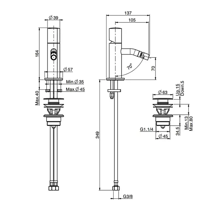 Carlo Frattini Sottolavabo Смеситель для биде, на 1 отв., без ручки, с донным клапаном click-clack, цвет: черный матовый