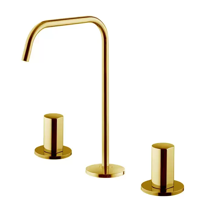 Carlo Frattini Sottolavabo Смеситель для раковины, на 3 отверстия, без ручек, поворотный излив Ø 10 мм., с донным клапаном click-clack, цвет: золото