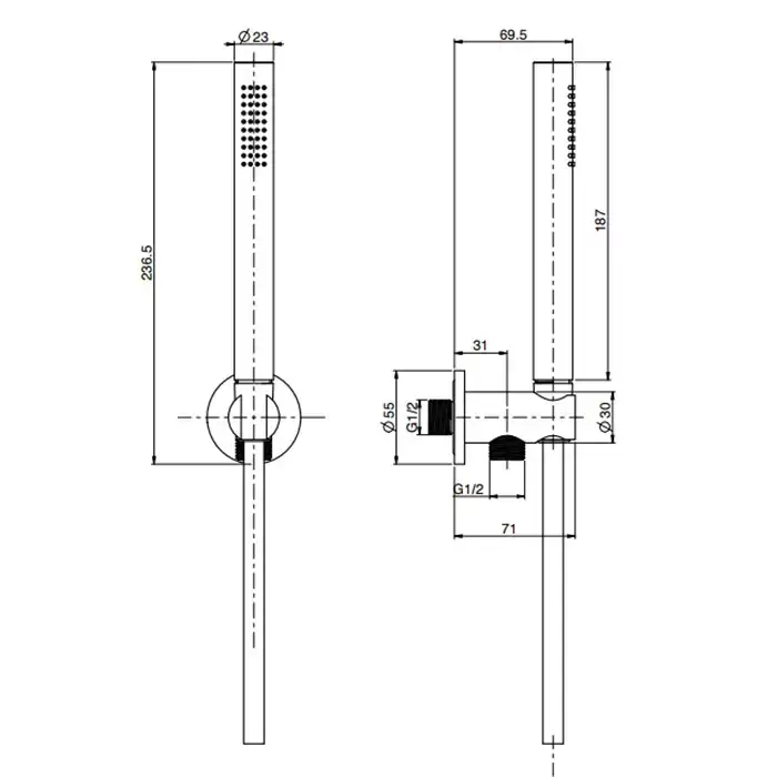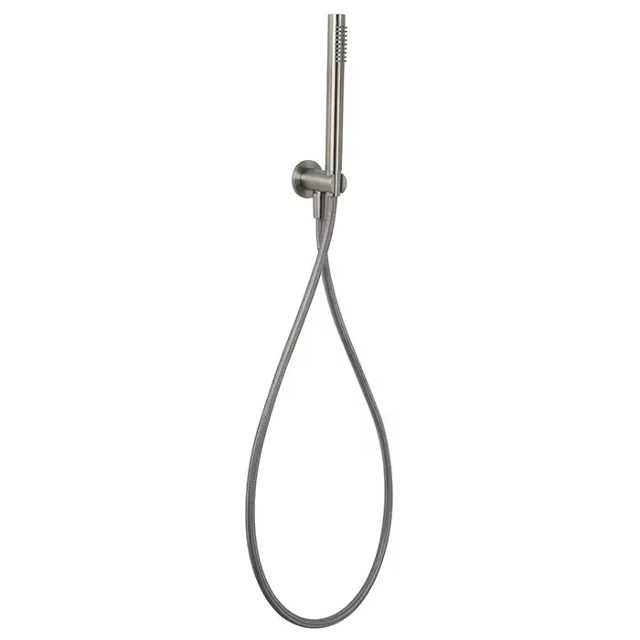 Carlo Frattini Spillo Steel Душевой комплект с ручным душем, шлангом 1500 мм. и настенным держателем с подводом воды, цвет: INOX