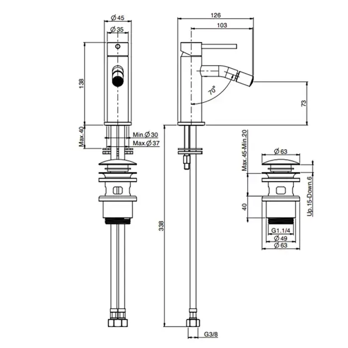 Carlo Frattini Spillo Steel Смеситель для биде, на 1 отверстие, с донным клапаном click-clack, цвет: INOX