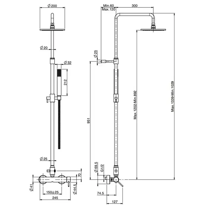 Carlo Frattini Spillo Up Смеситель для душа с душевой стойкой, верхним душем и душевым комплектом, цвет: хром