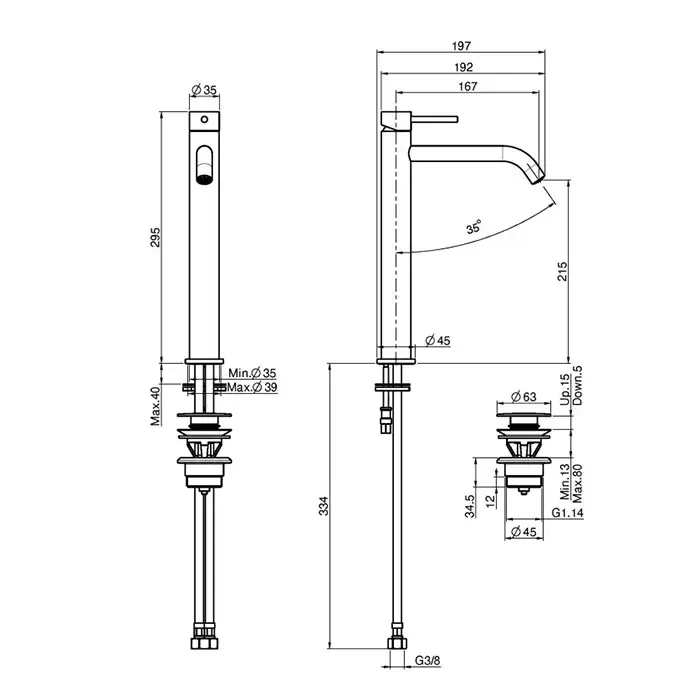 Carlo Frattini Spillo Up Смеситель для раковины, высота 29.5см., излив: 16.7см., с донным клапаном click-clack, цвет: золото