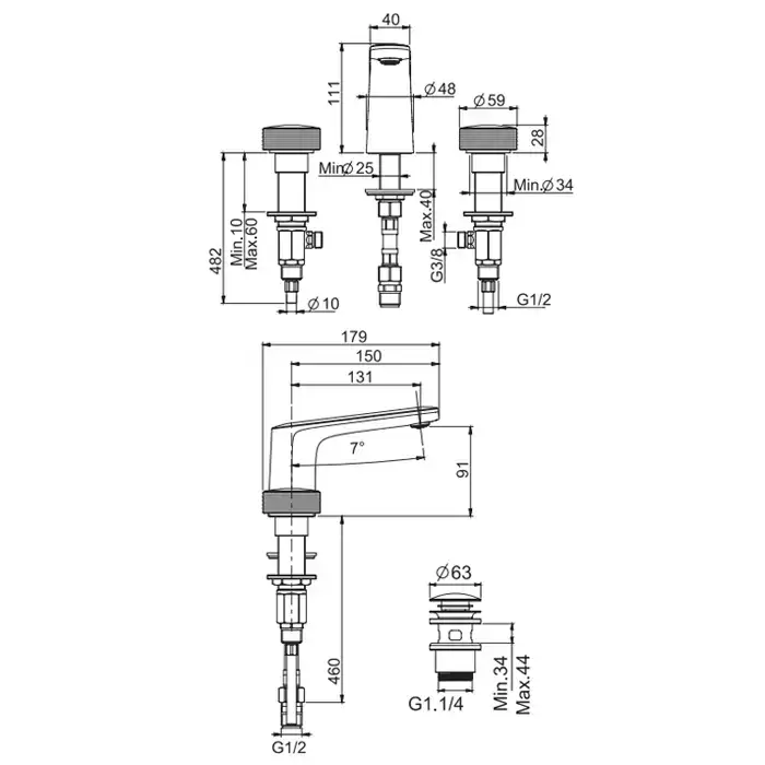 Carlo Frattini Texture Collection Смеситель для раковины на 3 отверстия, цвет: хром