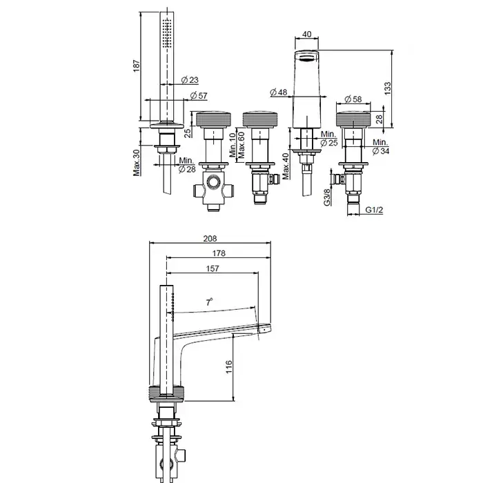 Carlo Frattini Texture Collection Смеситель на борт ванны, ручки "H", с ручным душем и шлангом, цвет: чёрный матовый