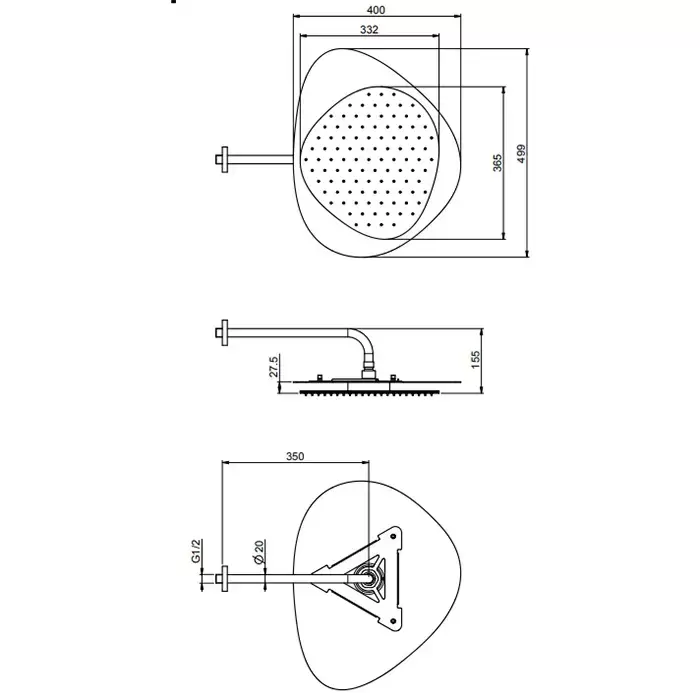 Carlo Frattini Wellness Верхний душ Cloud, в комплекте с настенным держателем 350 мм., верхняя пластина хром, цвет: хром