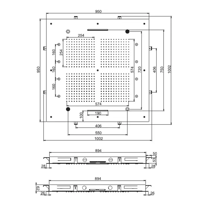 Carlo Frattini Wellness Верхний душ Harmonia 95x95см, встраиваемый, 3 режима: дождь, 8 форсунок, 2 каскада; Bluetooth,хромотерапия LED, цвет: хром