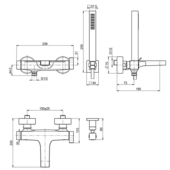 Carlo Frattini Zeta, Смеситель внешнего монтажа на ванну с душевым комплектом, цвет: Хром