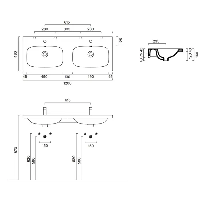 Catalano Alvea Раковина 120x46 двойная, с 2 отв., цвет: белый глянцевый