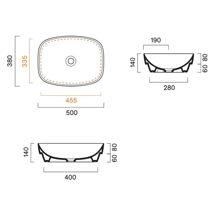Catalano Alvea Раковина 50x38см встраиваемая, без отв., цвет: черный матовый
