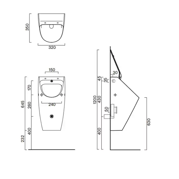 Catalano Comfort Писсуар 64x32см., с отв. для крышки, цвет: белый глянцевый