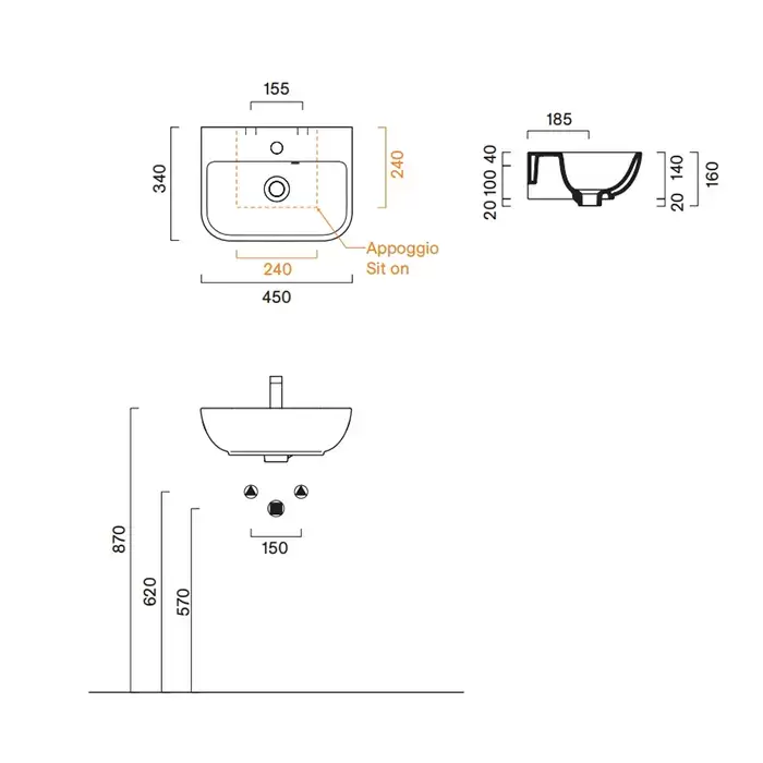 Catalano Italy Раковина 45х34см, с 1 отв., цвет: белый глянцевый