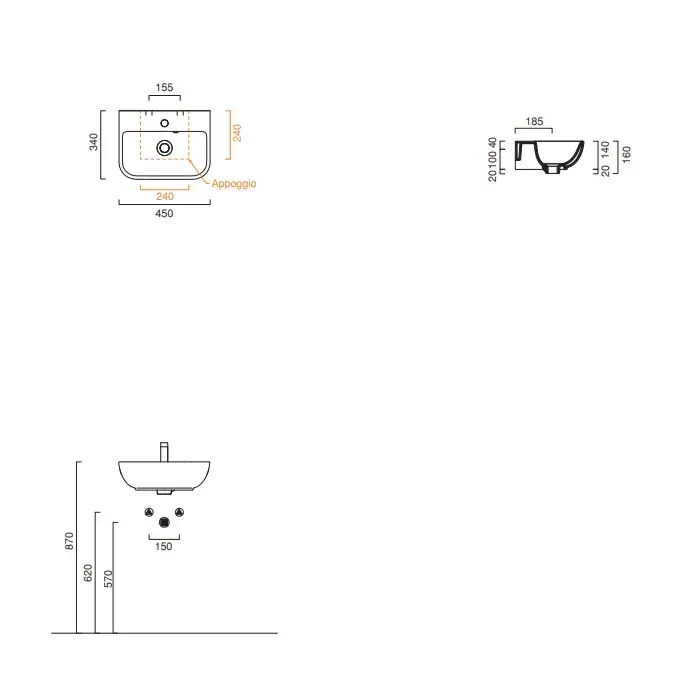 Catalano Italy Раковина 45x34см., подвесная, 1 отв., цвет: белый глянцевый