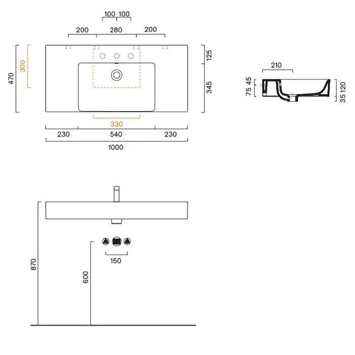 Catalano Premium Раковина 100x47см чаша в центре, с 1 отв., цвет: белый глянцевый