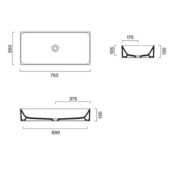 Catalano Premium Раковина 75x35см накладная, без отв., цвет: белый глянцевый