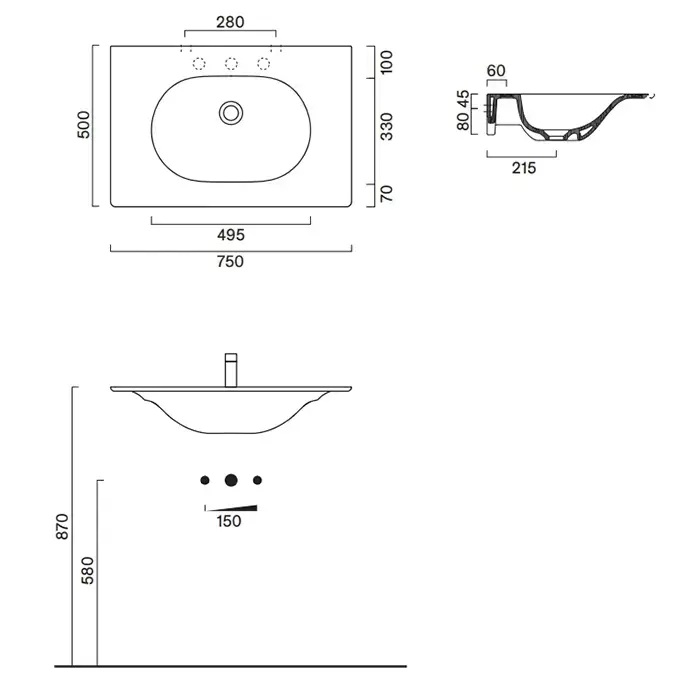 Catalano Sfera Раковина консоль 75x50см, с 1 отв., цвет: Cemento Satinato