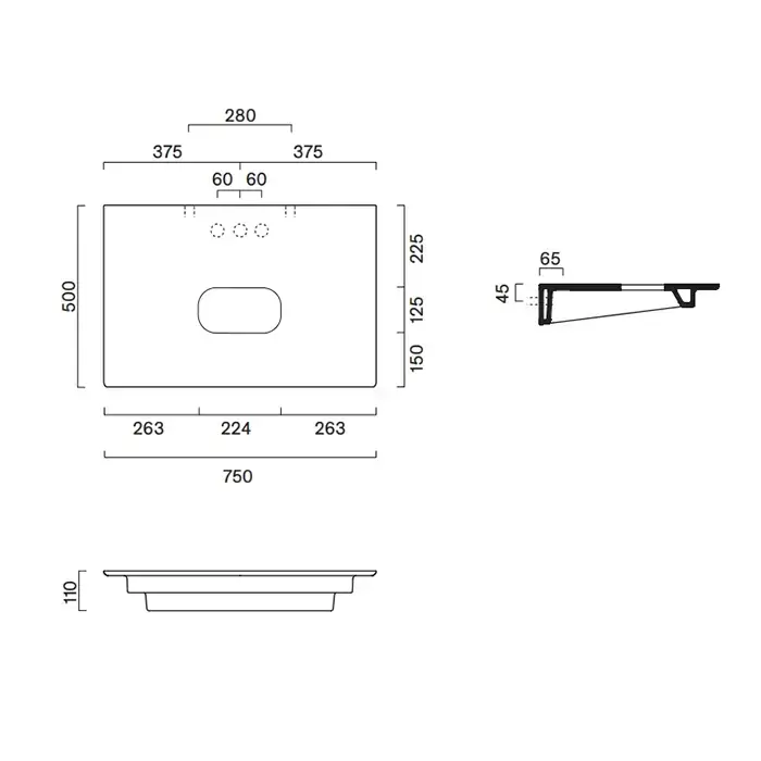 Catalano Столешница керамическая 75x50см, с отверстием , цвет: белый матовый