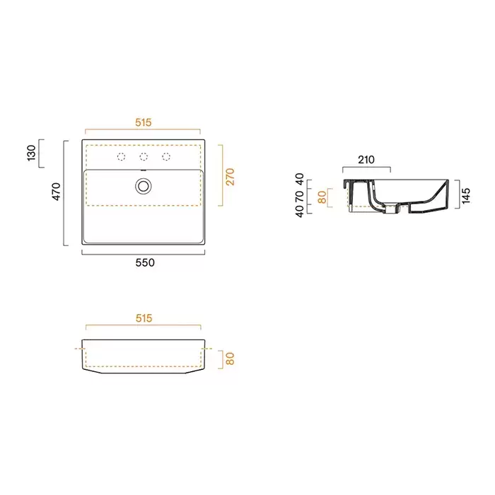 Catalano Zero Раковина 55х47см., без отв., полувстраиваемая, цвет: белый глянцевый