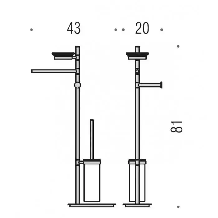 Colombo Square Стойка с аксессуарами, 81см, мыльница, полотенцедержатель, туалетный ерш, держатель т/б, цвет: хром