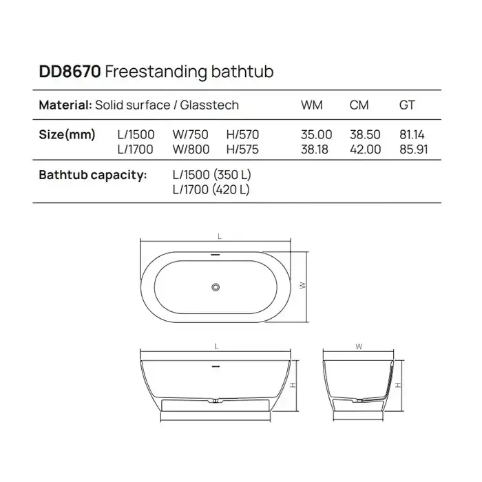 Dea Design Edge Ванна 150x75x57см., отдельностоящая, Solid Surface, цвет: White №18