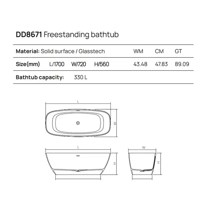 Dea Design Edge Ванна 170x72x56см., отдельностоящая, Solid Surface, цвет: Black №16