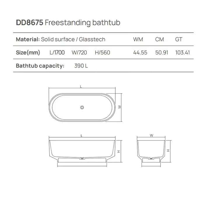 Dea Design Shadow Ванна 170x72xh56см, отдельностоящая, цвет: белый