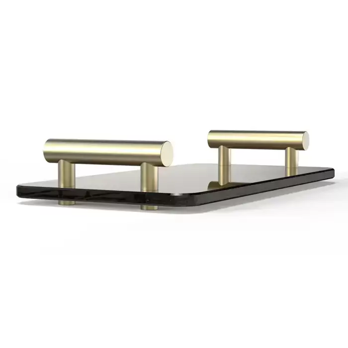Decor Walther Bar Tab Поднос с ручками, стеклянный, настольный, цвет: матовое золото / черное стекло