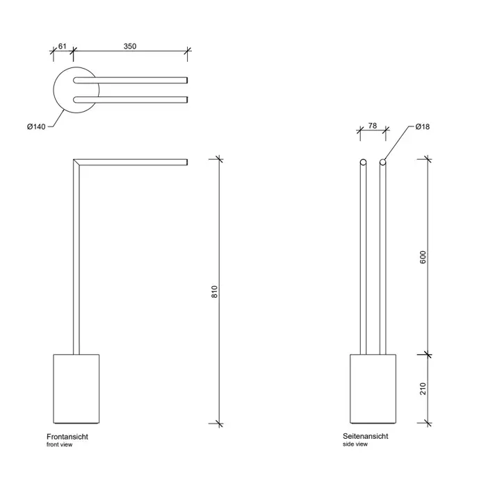 Decor Walther Black Stone HT2 Полотенцедержатель 41xh81см, напольный, цвет: черный матовый / матовая сталь