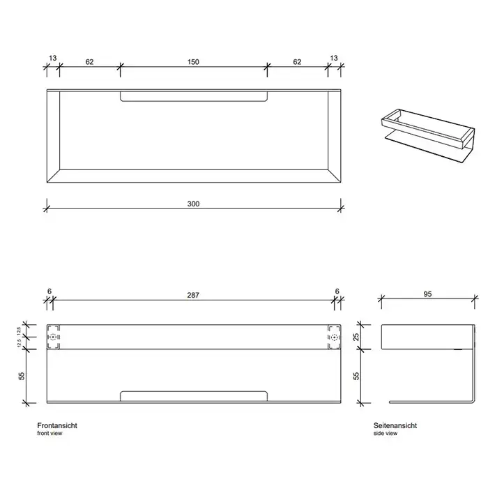 Decor Walther Brick Полка для душа 30х9.5х8см., подвесная, цвет: черный матовый