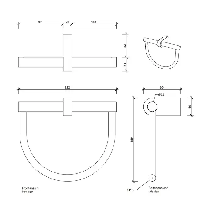 Decor Walther Century HTR Полотенцедержатель кольцо 22см., подвесной, цвет: хром