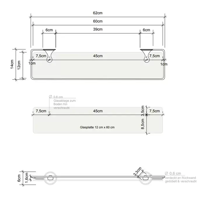 Decor Walther Classic GLA R Полка стеклянная 62x14.5см, подвесной, цвет: золото
