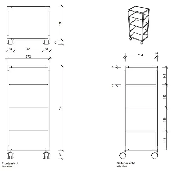 Decor Walther RW 2 Стеллаж передвижной 38x30x80см, стекло прозрачное, напольный, цвет: хром