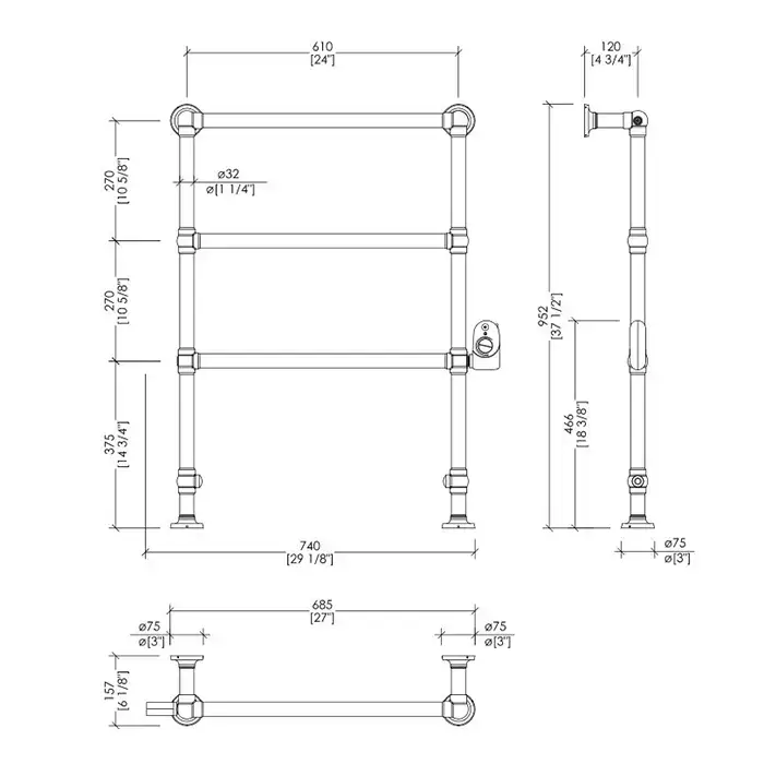 Devon&Devon Baccus 4 Полотенцесушитель электрический 74х95.2x15.7см, термостат хром, подключение DX, цвет: хром