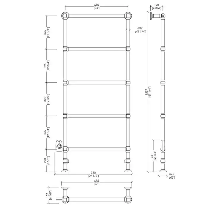 Devon&Devon Baccus 7 Полотенцесушитель электрический 75х15.7хh155.7см, напольный, термостат белый, подключение SX, цвет: светлое золото