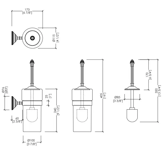 Devon&Devon Diamond Туалетный ершик, подвесной, белая керамика, цвет: бронза