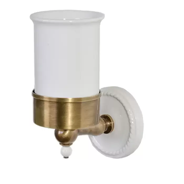 Devon&Devon Dorothy Стаканчик (керамика белая) для зубных щеток подвесной, цвет: бронза/белый