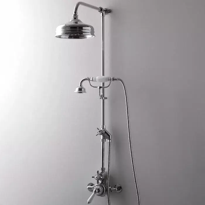Devon&Devon Душевая стойка, с термостатическим смесителем, верхним душем 20см., и ручным душем, цвет: белый/хром