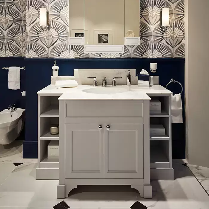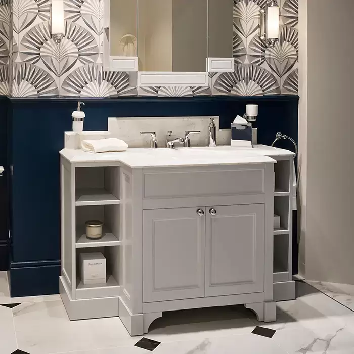 Devon&Devon Flair Тумба под раковину 128х102см., со столешницей из мрамора Calacatta Borghini и раковиной White50, цвет: Off White