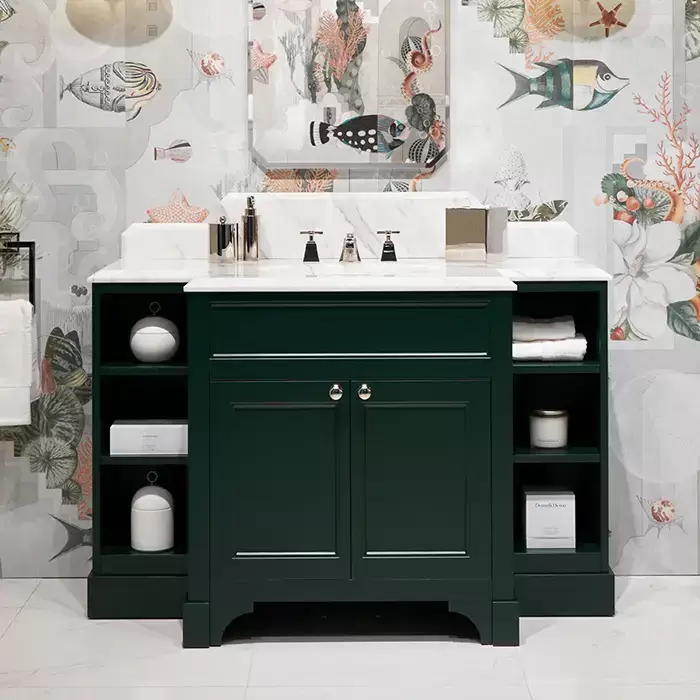Devon&Devon Flair Тумба под раковину 128х102см., со столешницей из мрамора Calacatta Borghini и раковиной White50, цвет: English Green