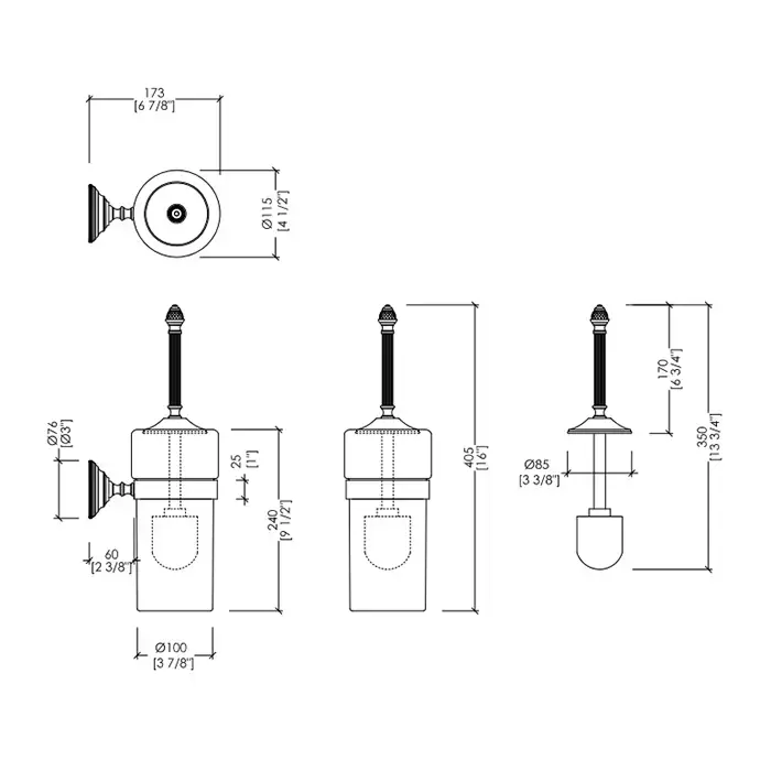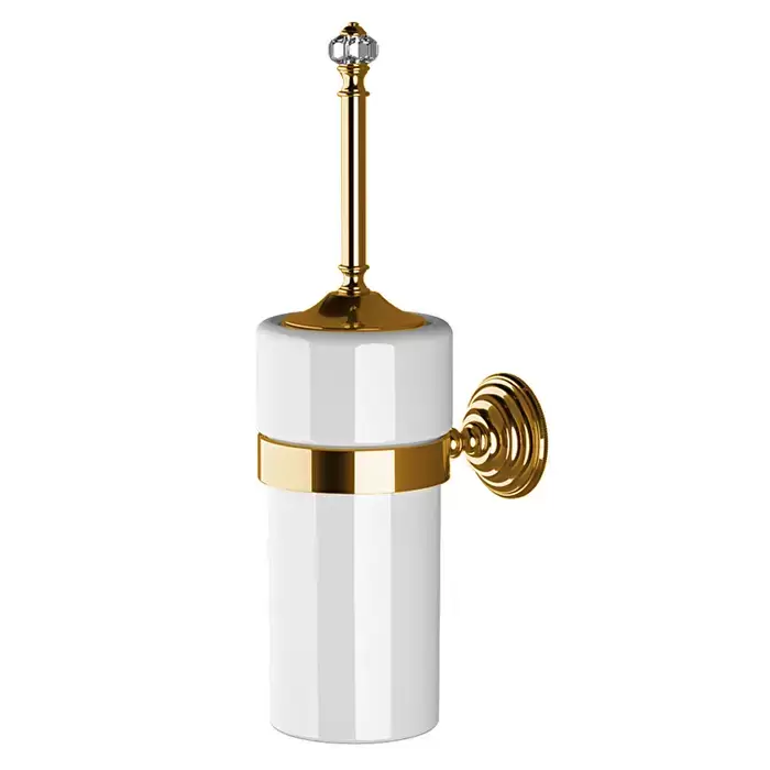 Devon&Devon Gemstone Ерш для унитаза, подвесной в керамической колбе, цвет: античная латунь/белый