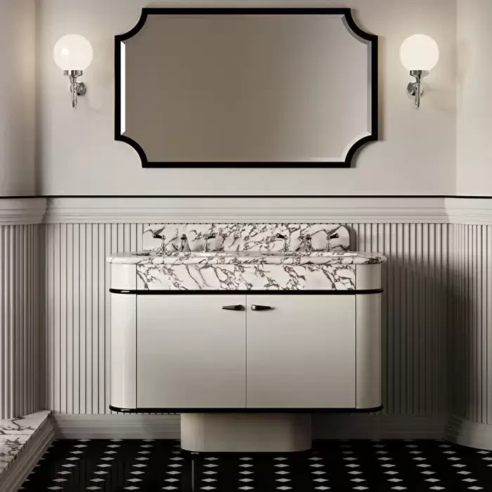 Devon&Devon Liberty Тумба под раковину двойная 124.5х100.8 см, со столешницей из мрамора CALACATTA VIOLA, раковина ROSE на 3 отв , цвет мебели CREAM