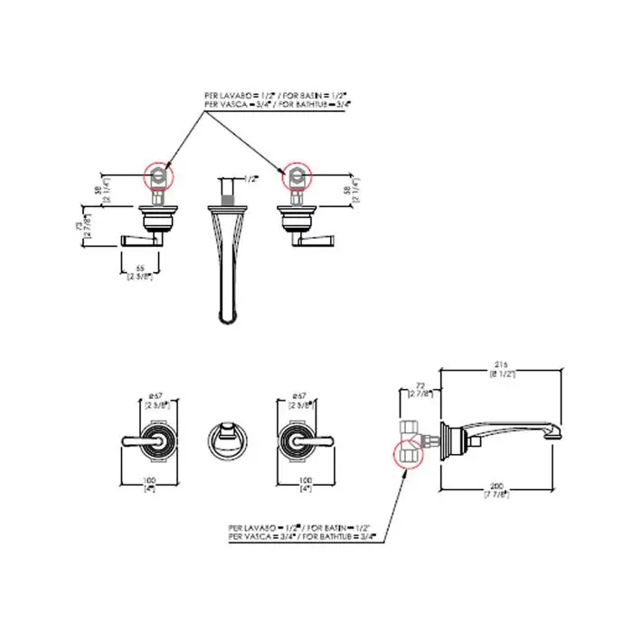 Devon&Devon Manhattan Смеситель для раковины настенный, на 3 отв, цвет: никель блестящий